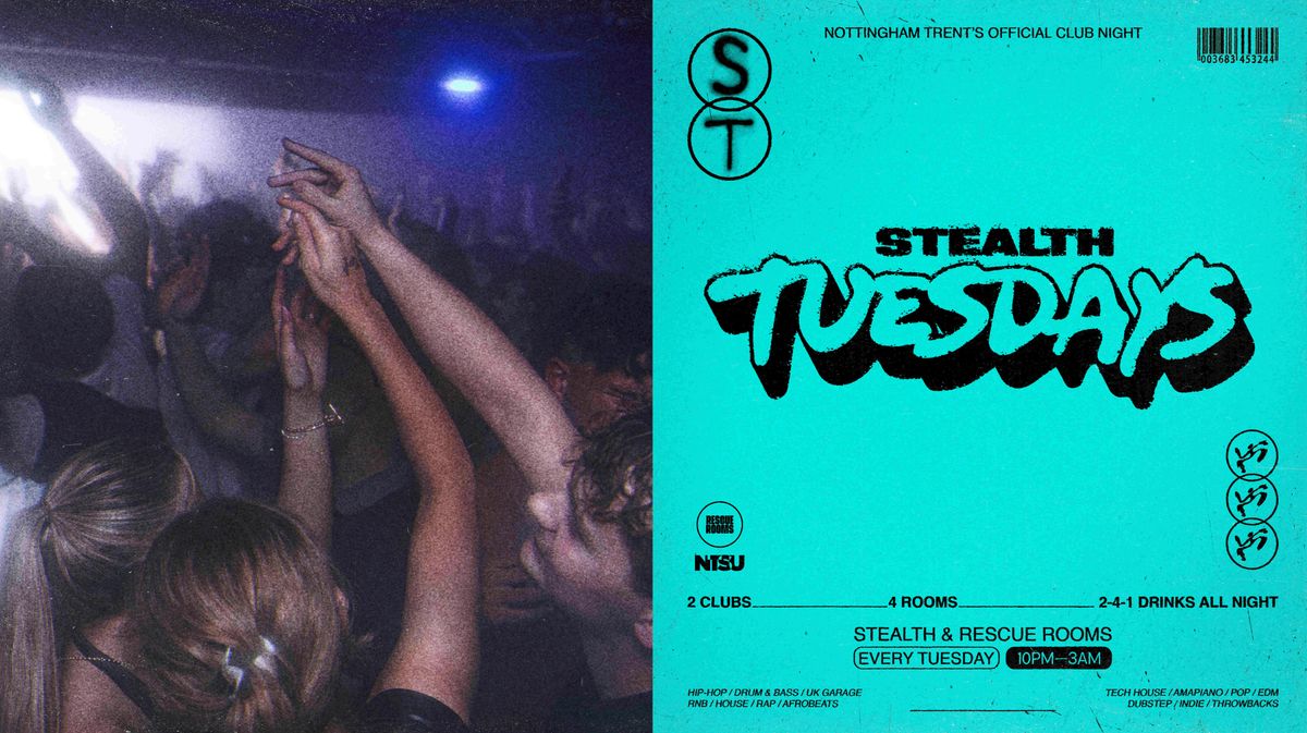 STEALTH TUESDAYS2 Clubs • 3 Rooms • 2-4-1 DrinksEvery Tuesday — Stealth & Rescue Rooms