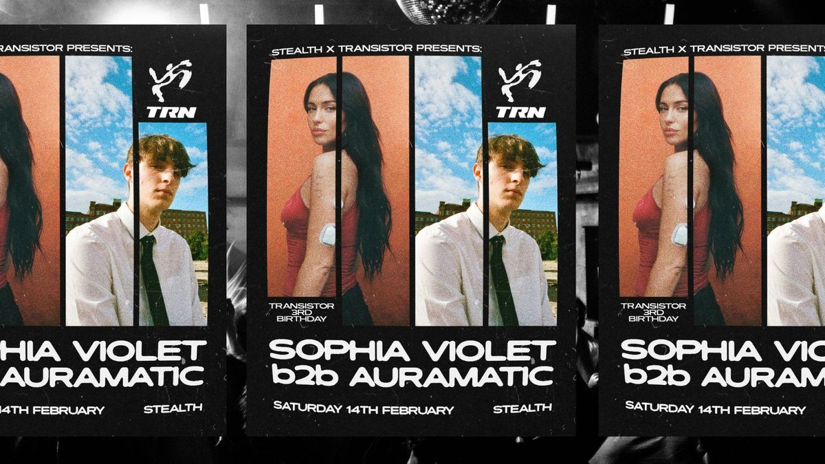 Sophia Violet is one of the most exciting names breaking through right now — As a member of Girls Don’t Sync, and through her solo ventures, Sophia’s been tearing up clubs and festivals across the globe — from LoFi Amsterdam to Progress Centre Manchester, Glastonbury’s Type One takeover, and even a sold-out headline show in Newcastle. She last joined us at Stealth in September 2024, and we can't wait for her to raise the roof again.Joining her is AURAMATIC — a long-time friend of the Transistor family. His journey with us started in the early days, and since then he’s been unstoppable — dropping heaters on ATW, Hardline, and more, taking his sound global with shows in Europe and Australia. With infectious hooks, catchy organs, and basslines built for the club, Auramatic’s sound captures everything we love about UK dance music right now.