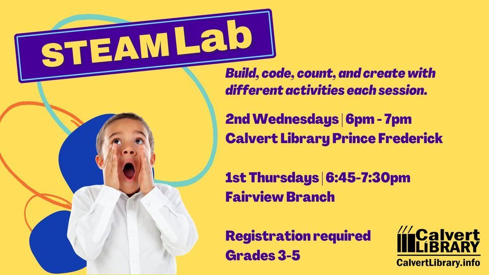 Become a scientist and explore topics related to STEAM on the first Thursday each month! Build, code, count, and create with different activities each session. Registration required. Intended for scientists in grades 3-5.