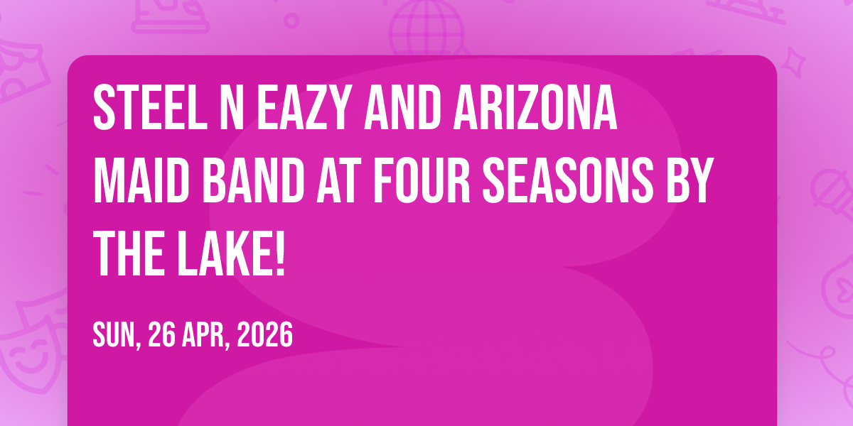 Steel-N-Eazy will be at Four Seasons by the Lake, on Sunday, October 5th, along with Arizona Maid Band! Steel-N-Eazy will play from 2:00 - 3:45 pm, and, Arizona Maid Band will play from 4:15 - 6:00 pm. Come on out for some good food, cool drinks, and a mix of live music. NO COVER CHARGE.
