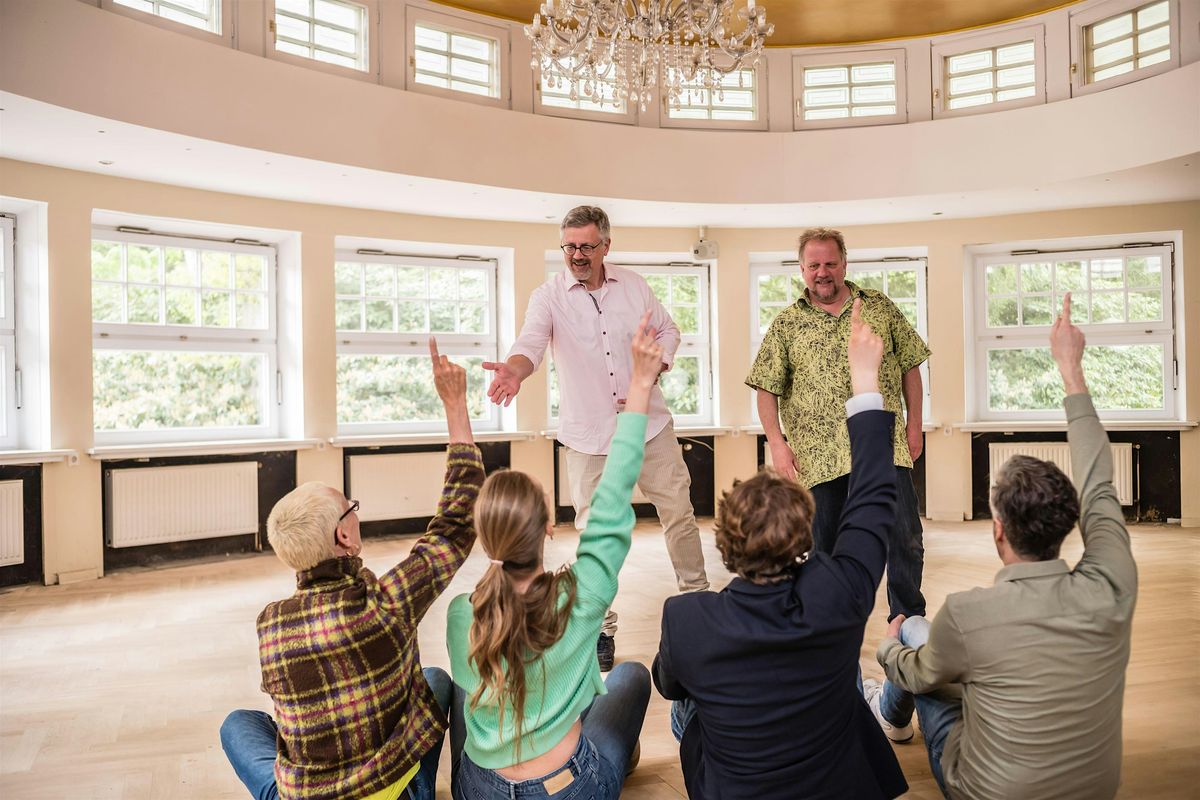 In diesem praxisorientierten Workshop vermitteln wir euch die wesentlichen Grundlagen der Moderation und des Anleitens von Improspielen. Wir zeigen euch, wie ihr ein Improspiel überzeugend anmoderiert, welche Informationen das Publikum benötigt und wie ihr die Zuschauer*innen von Anfang an begeistert.