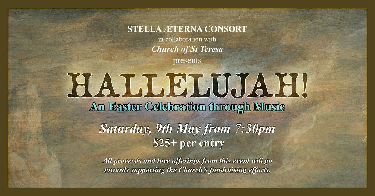 STELLA ÆTERNA CONSORT in collaboration with the Church of St Teresa, offers a curated programme of sacred music from various musical-eras, presented as a musical narrative of the Christian events of Easter. The evening features works from the iconic "Hallelujah" chorus of Handel’s Messiah to Vivaldi’s Gloria, Pergolesi’s Stabat Mater, and other timeless pieces.
