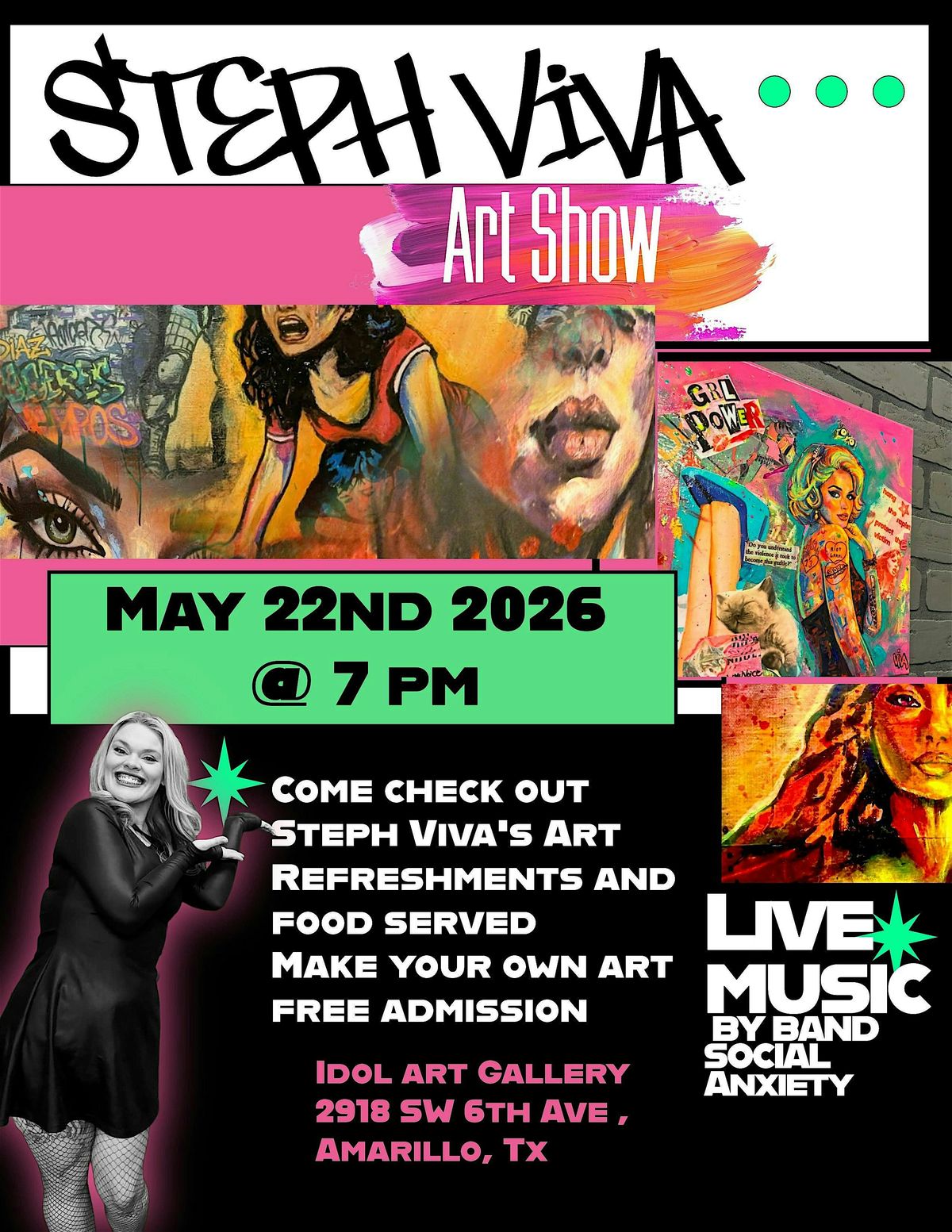 Step into a night of bold color, glowing light, and raw emotion as Steph “Viva” presents a new collection of original acrylic paintings capturing powerful, human moments in a striking, unforgettable style. From intense, high-impact pieces to quieter, reflective works, this collection invites you to connect, feel, and take something meaningful with you.