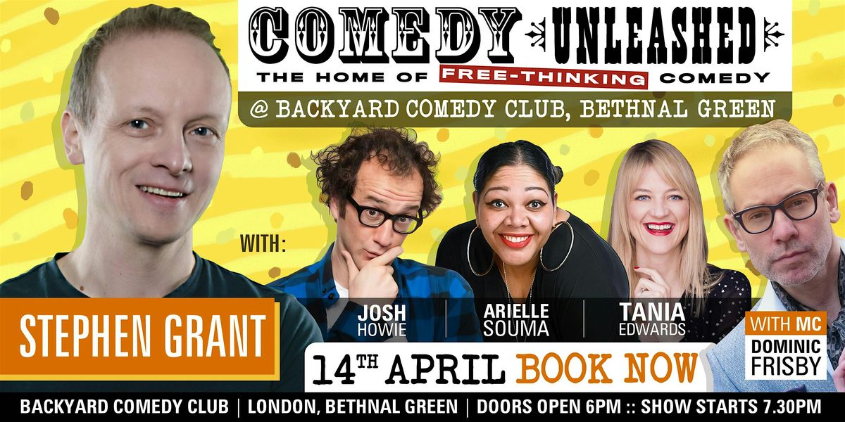 Doors open 6.00pm. Food is available at the bar. Show starts at 7.30pm and finishes at 10pm. Artists on the bill may change. Ticket buyers will be added to the Comedy Unleashed email newsletter. You're free to unsubscribe at any time.