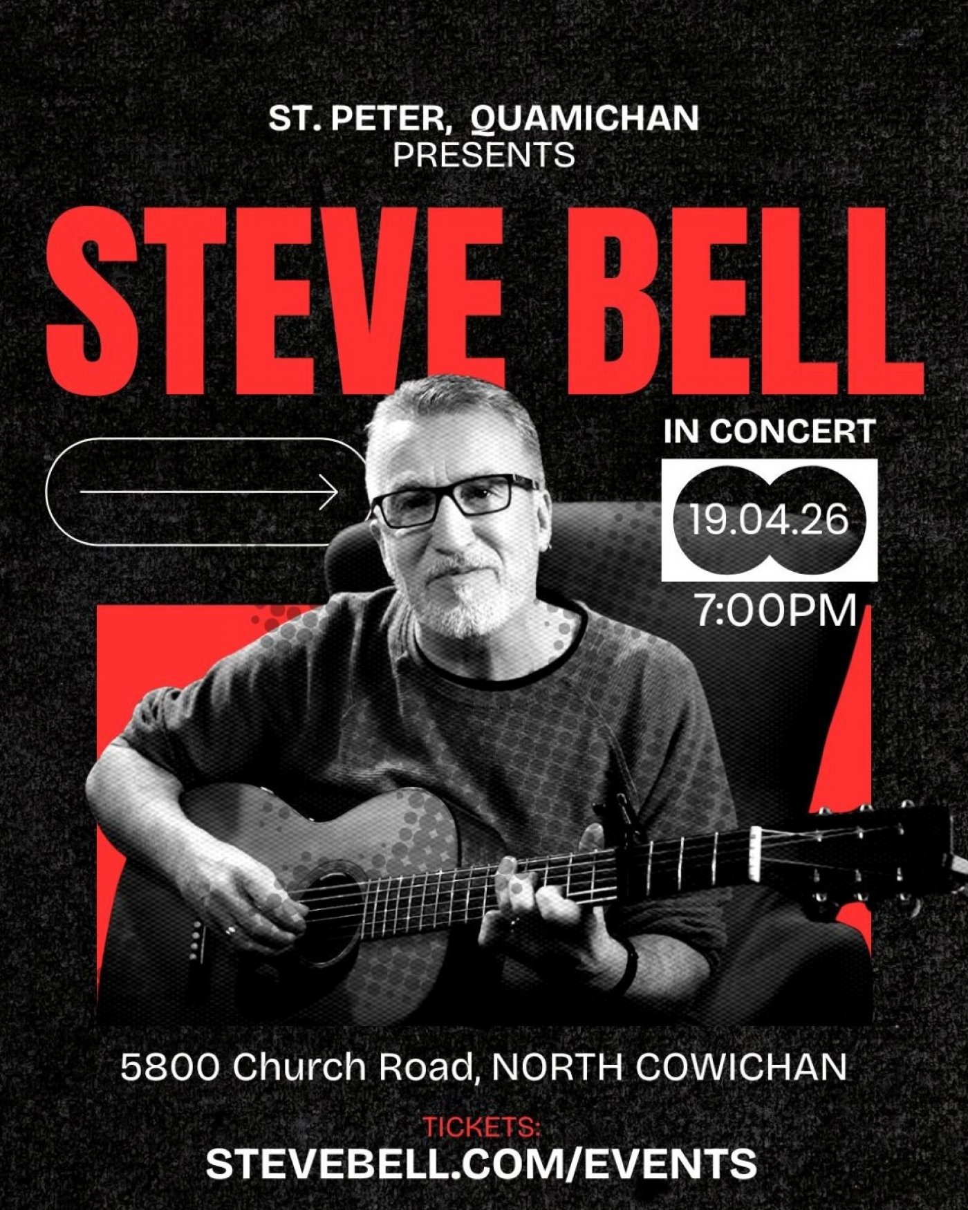 Tickets available at https://stevebell.com/event/north-cowichan-bc-solo-concert/ or in the parish office (only cash or cheque are accepted in the office).