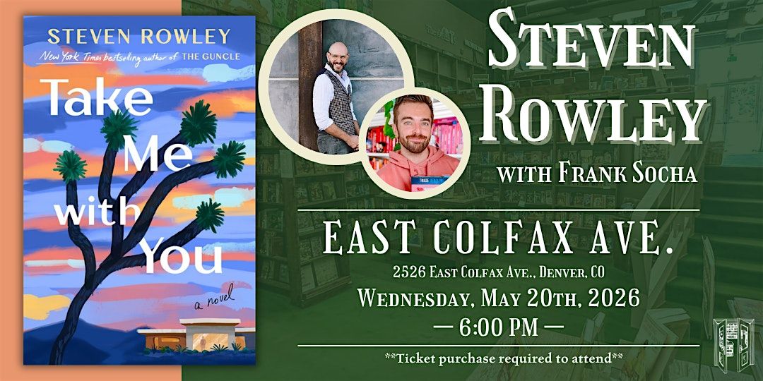 We are so excited to welcome Steven Rowley in conversation with local book enthusiast, Frank Socha, on Wednesday, May 20th at 6:00 PM at our Colfax location to celebrate his new epic love story, Take Me with You.