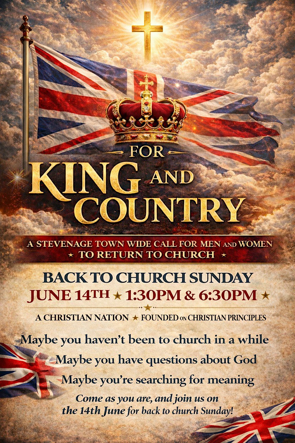 For King and Country is a special town-wide invitation for the people of Stevenage to return to what has always been at the heart of our nation — faith, community, and Christian heritage.