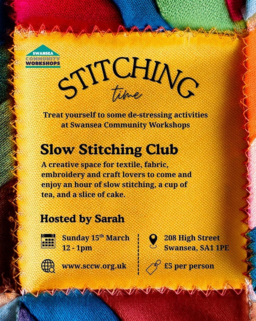 A creative space for textile, fabric, embroidery and craft lovers to come and enjoy an hour of slow stiching with a cup of tea and cake.About this Event