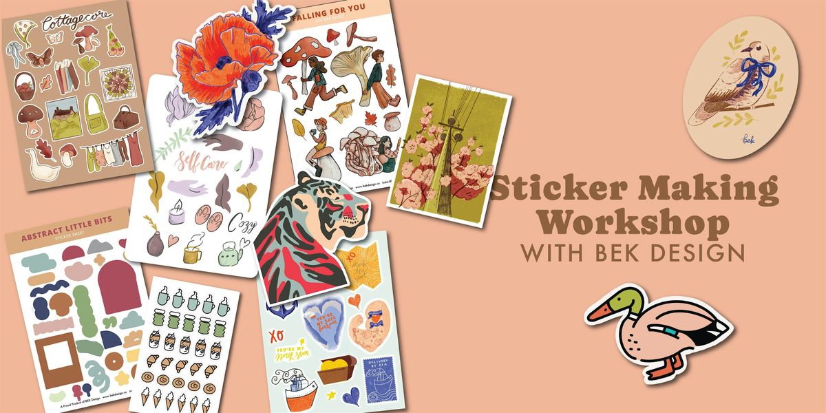 Hi I'm Bek! Welcome to my new sticker making workshop! I've been making and selling stickers online and at local markets in Vancouver for the past 6 years! I'm so excited to show you my process and make custom stickers together. Held at my art studio at MakerLabs in East Van you will design, print and then cut on the cricut custom waterproof stickers! I will also show you how to set up your files to get them printed by professional print shops like Jukebox.
