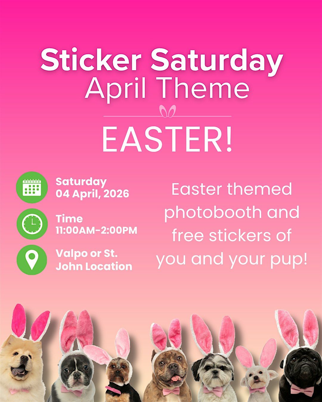 Starting April 4th, join us for Sticker Saturdays: a monthly themed photobooth experience with fun props for your pup (and you too, if you’re feeling adventurous), plus FREE custom stickers you get to take home in about 10 minutes.