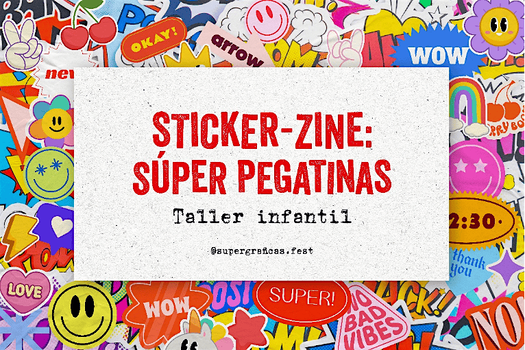 Diseñamos una colección de pegatinas inventadas (personajes, objetos y palabras) y la convertimos en un catálogo-fanzine colectivo para llevar a casa. Un taller rápido, visual y muy accesible: aquí lo importante es probar, repetir y jugar con formas.