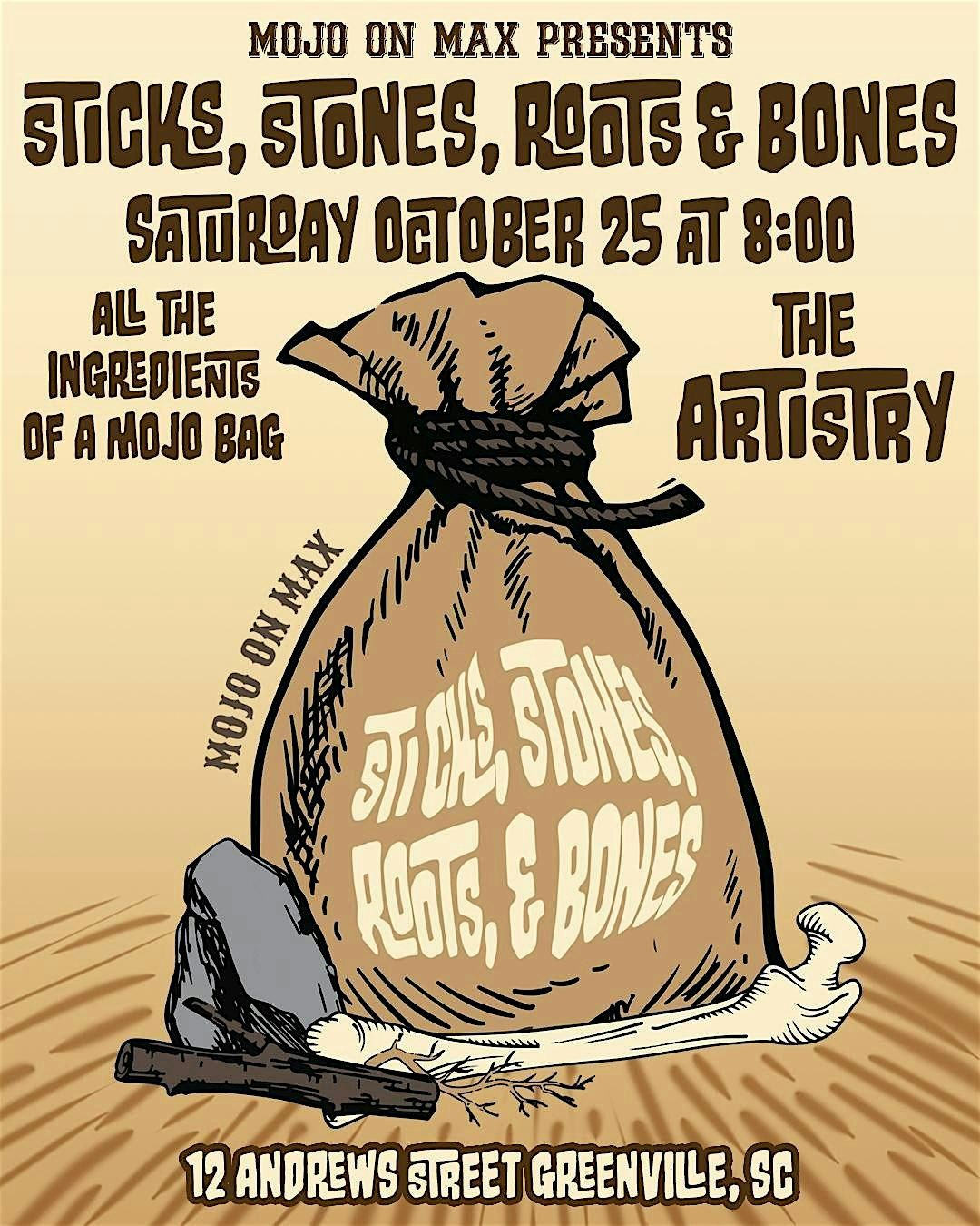 Come join us at The Artistry for a creative gathering celebrating nature's elements of Sticks, Stones, Roots, and Bones through art and musi