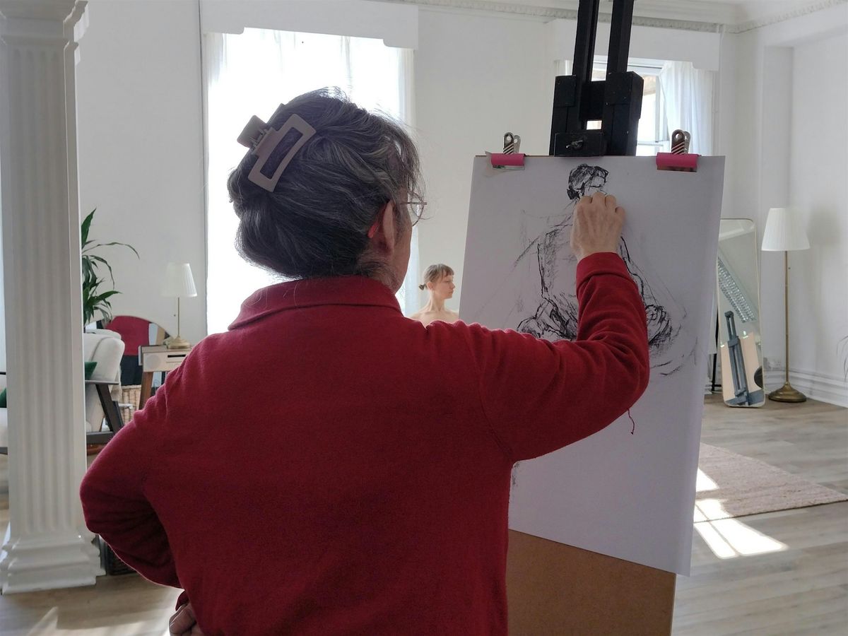 Each month explores a different drawing focus, allowing returning participants to develop their skills over time while ensuring every session remains accessible for newcomers. The morning typically begins with a series of shorter warm-up poses before moving into longer studies, giving time to settle into your drawing.