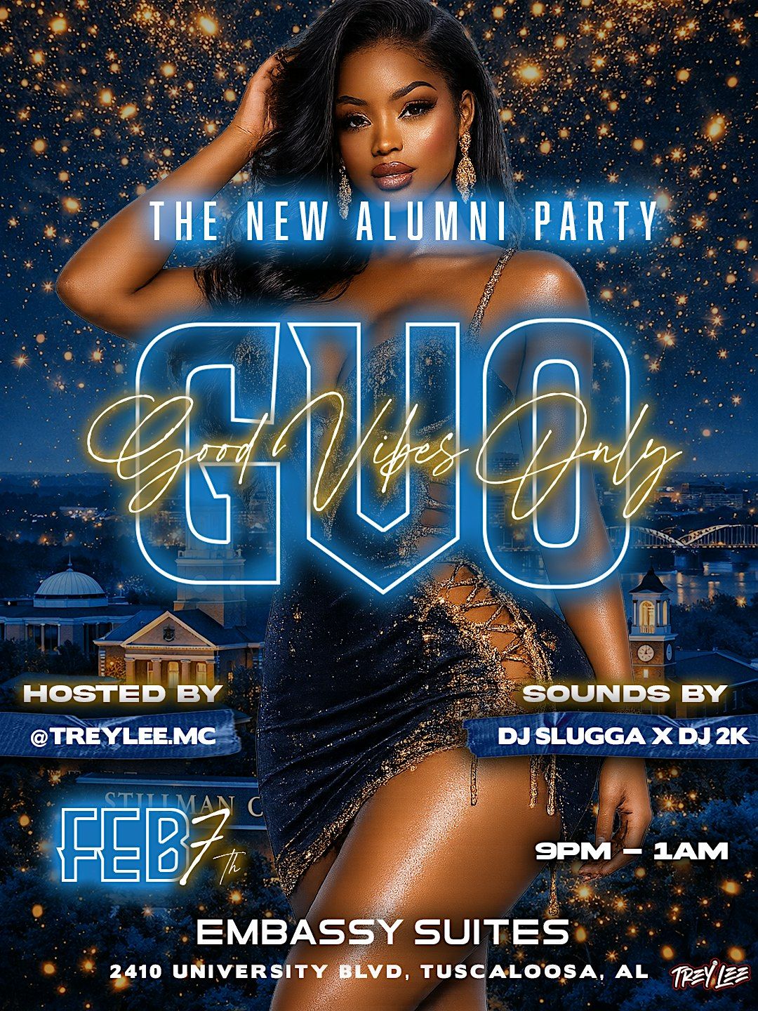 Good Vibes Only official SC Homecoming After Party. DJ Slugga & DJ 2K. Stillman Homecoming Saturday, Feb 7 @ Embassy Suites Tuscaloosa.