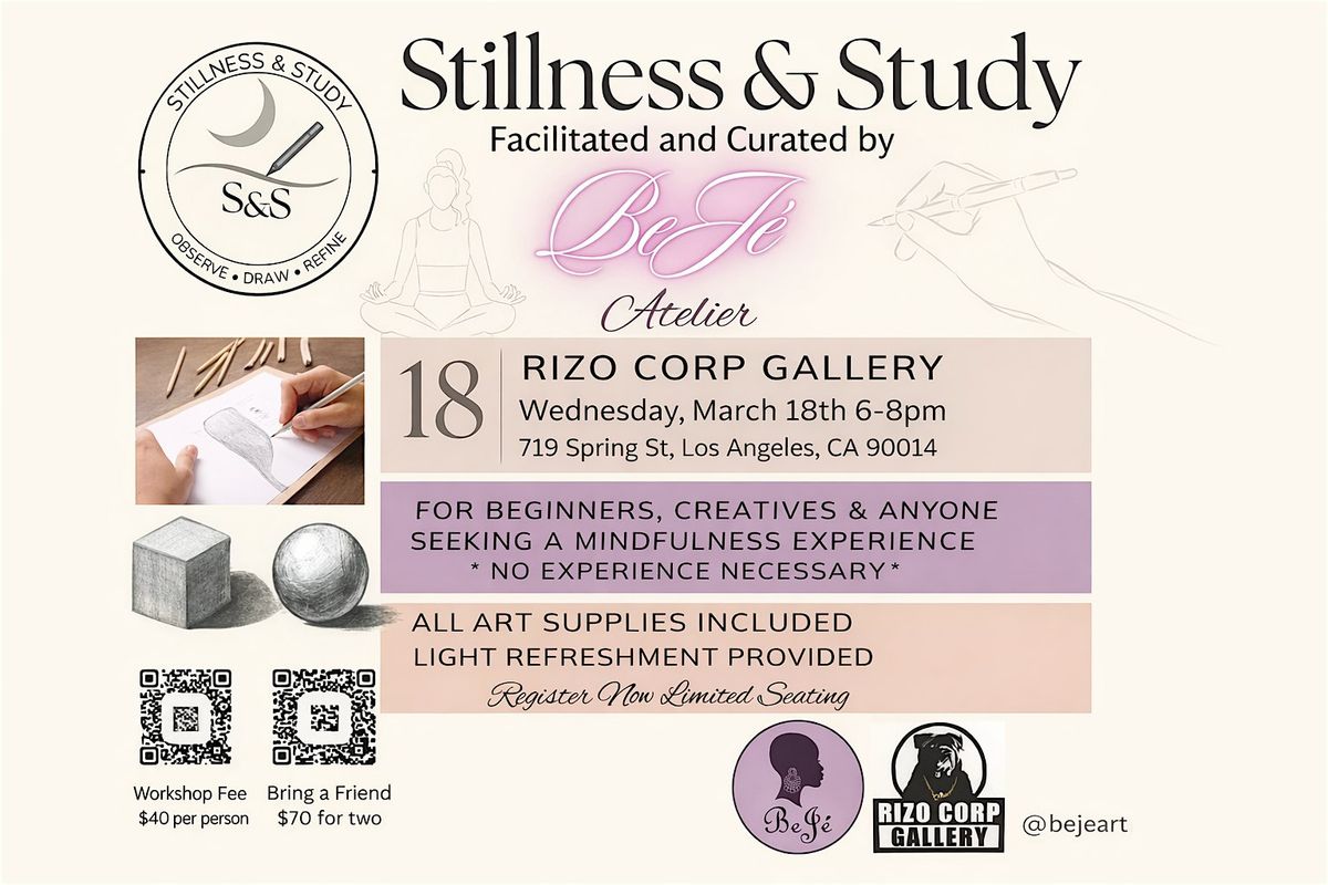 Sketch and unwind surrounded by some of the most beautiful art in Downtown LA—right in the heart of Gallery Row at Rizo Corp Gallery. You’ll be drawing in an inspiring space filled with real creative energy, where the walls do half the motivating for you.