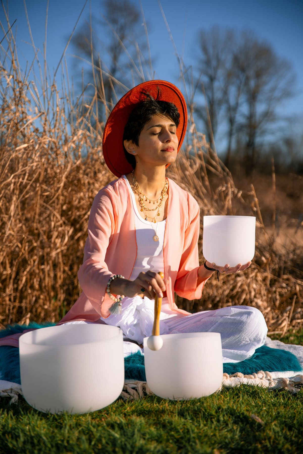 Komal creates immersive sound experiences that invite deep rest, nervous system regulation, and a return to presence.
