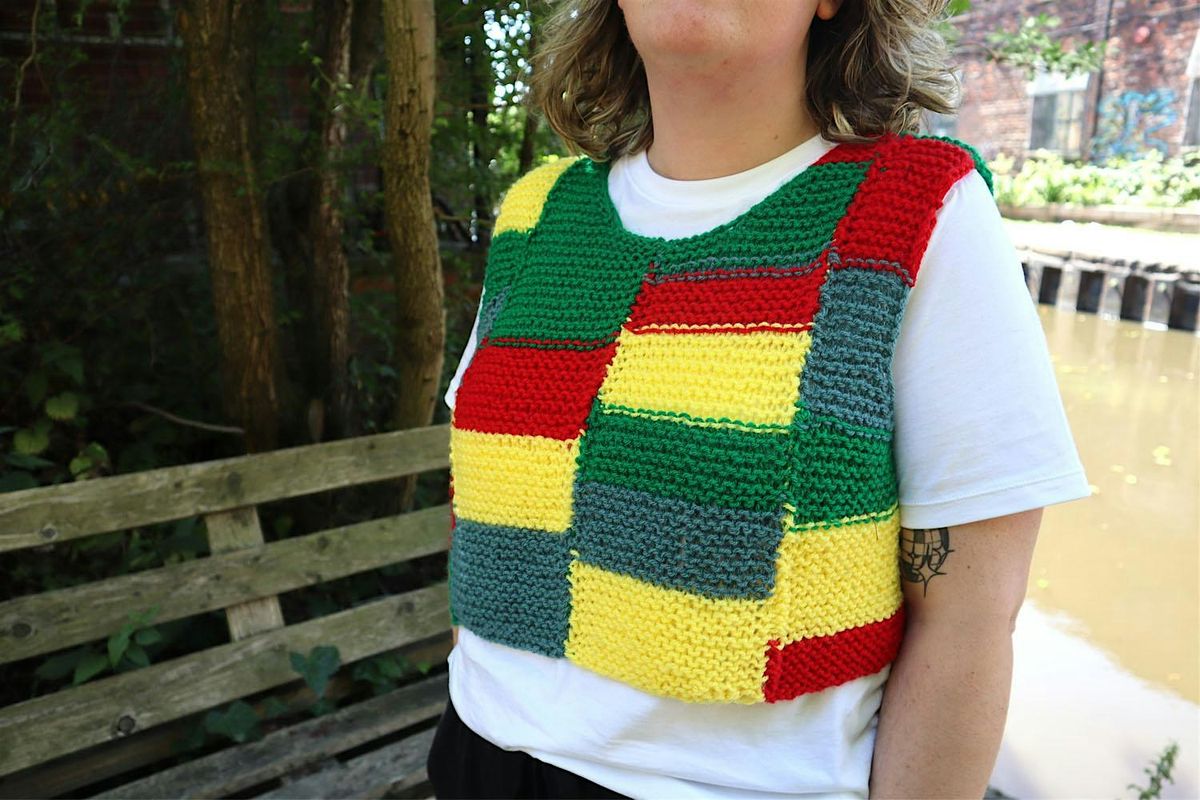 Join Stitched Up for a 4 week beginners course learning how to knit to make your own scrap busters vest top. Over the weeks you will learn basic knitting skills for beginners including casting on and casting off, garter stitch, and how to knit stripes/changing colours.