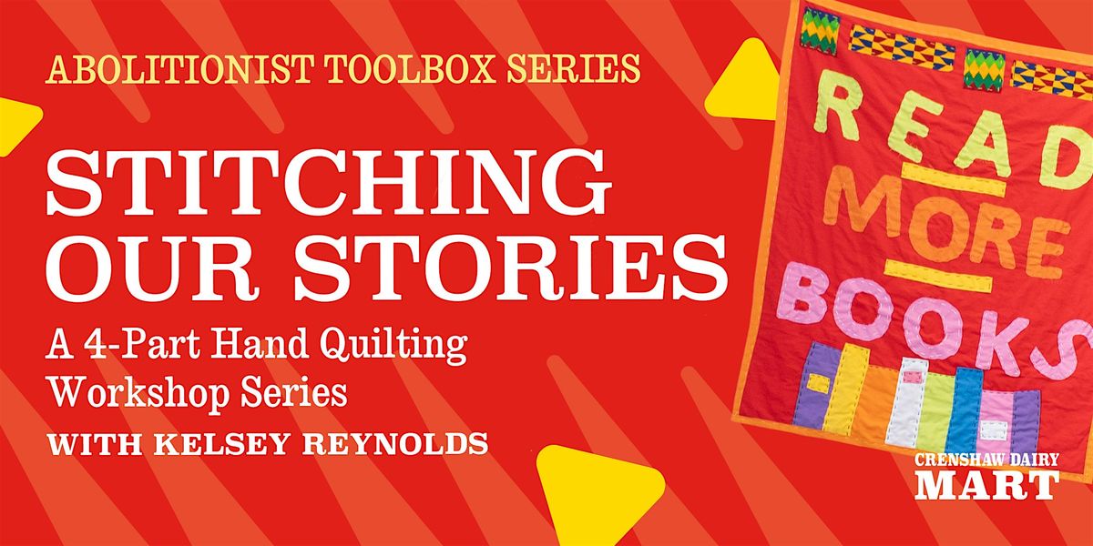 Together, we will learn simple, powerful stitches and be introduced to basic embroidery and appliqué techniques, while also engaging with short readings and personal writing. Each participant will create their own quilt over the course of the series, which will be shared at a culminating community showcase on June 7.