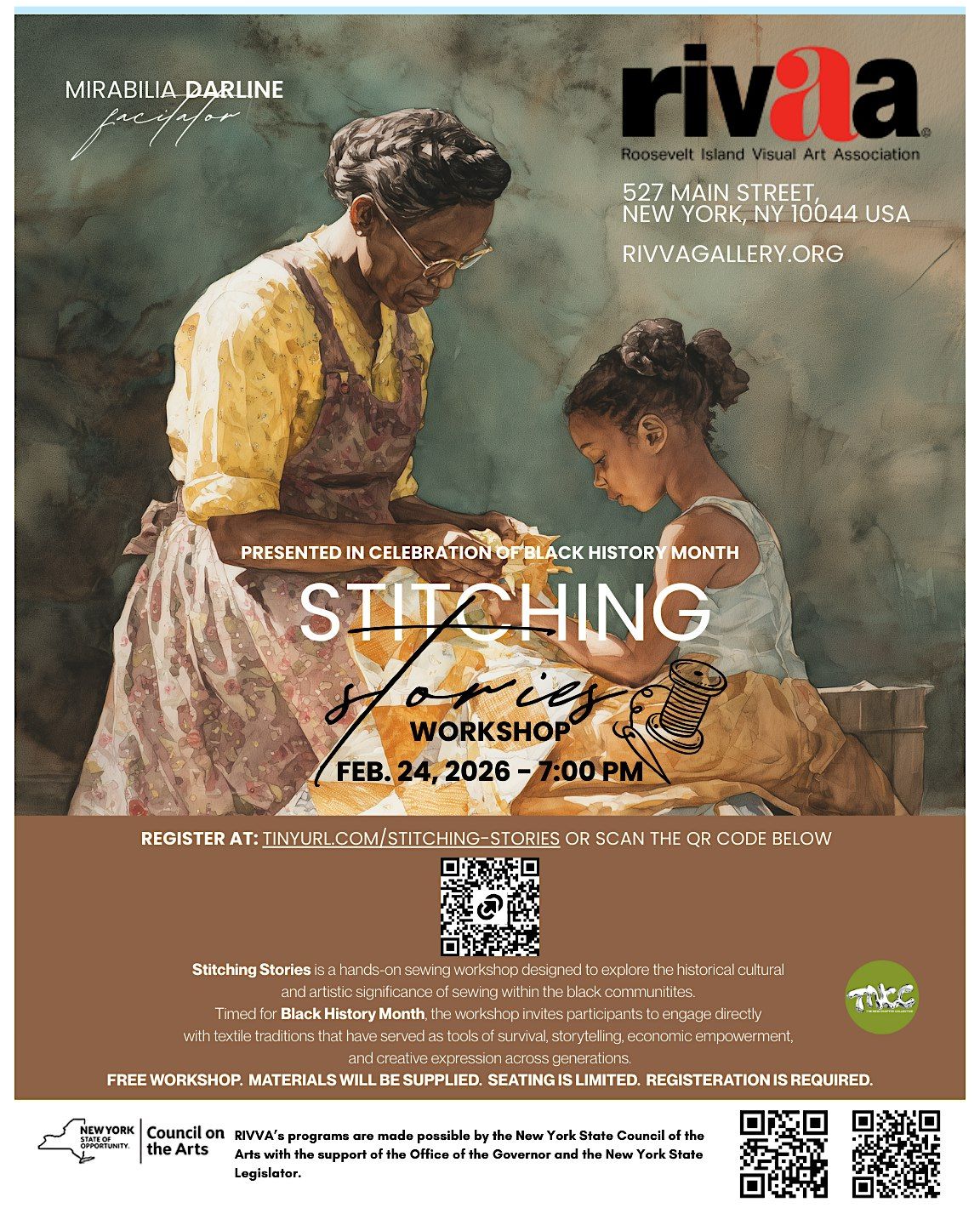 Stitching Stories is a hands-on sewing workshop designed to explore the historical, cultural, and artistic significance of sewing within Black communities. Timed for Black History Month, the workshop invites participants to engage directly with textile traditions that have served as tools of survival, storytelling, economic empowerment, and creative expression across generations.