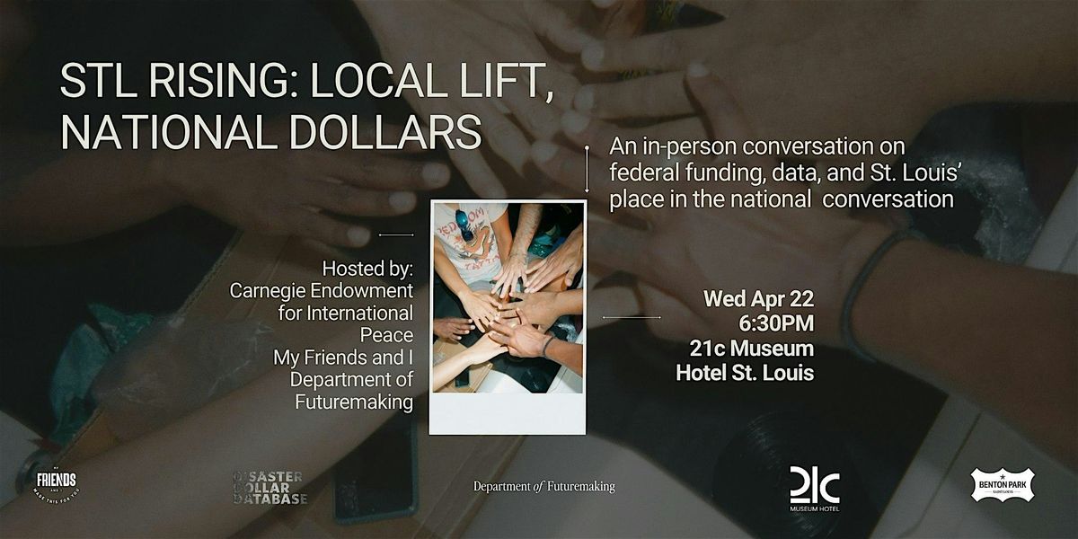 My Friends and I, in partnership with the Department of Futuremaking, are hosting the Carnegie Endowment for International Peace’s Disaster Dollar Database in St. Louis for an in-person presentation and workshop. The session will be a deep dive into disaster relief data, federal and national natural disaster funding trends, case studies from similarly sized recoveries, and potential paths forward for federal tornado relief funding following last year’s May 16th tornado.