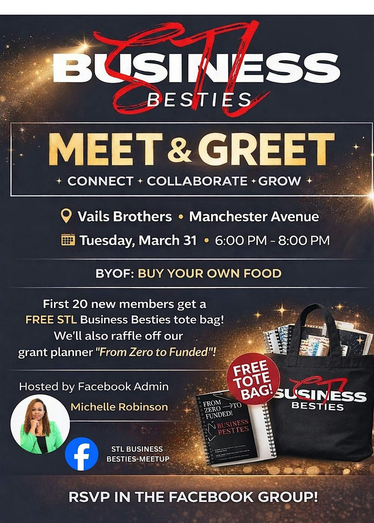 The STL Business Besties Facebook group was created to bring entrepreneurs together to learn from each other, collaborate, build, and scale our businesses. Now we’re taking that community offline for an evening of networking, conversation, and connection.