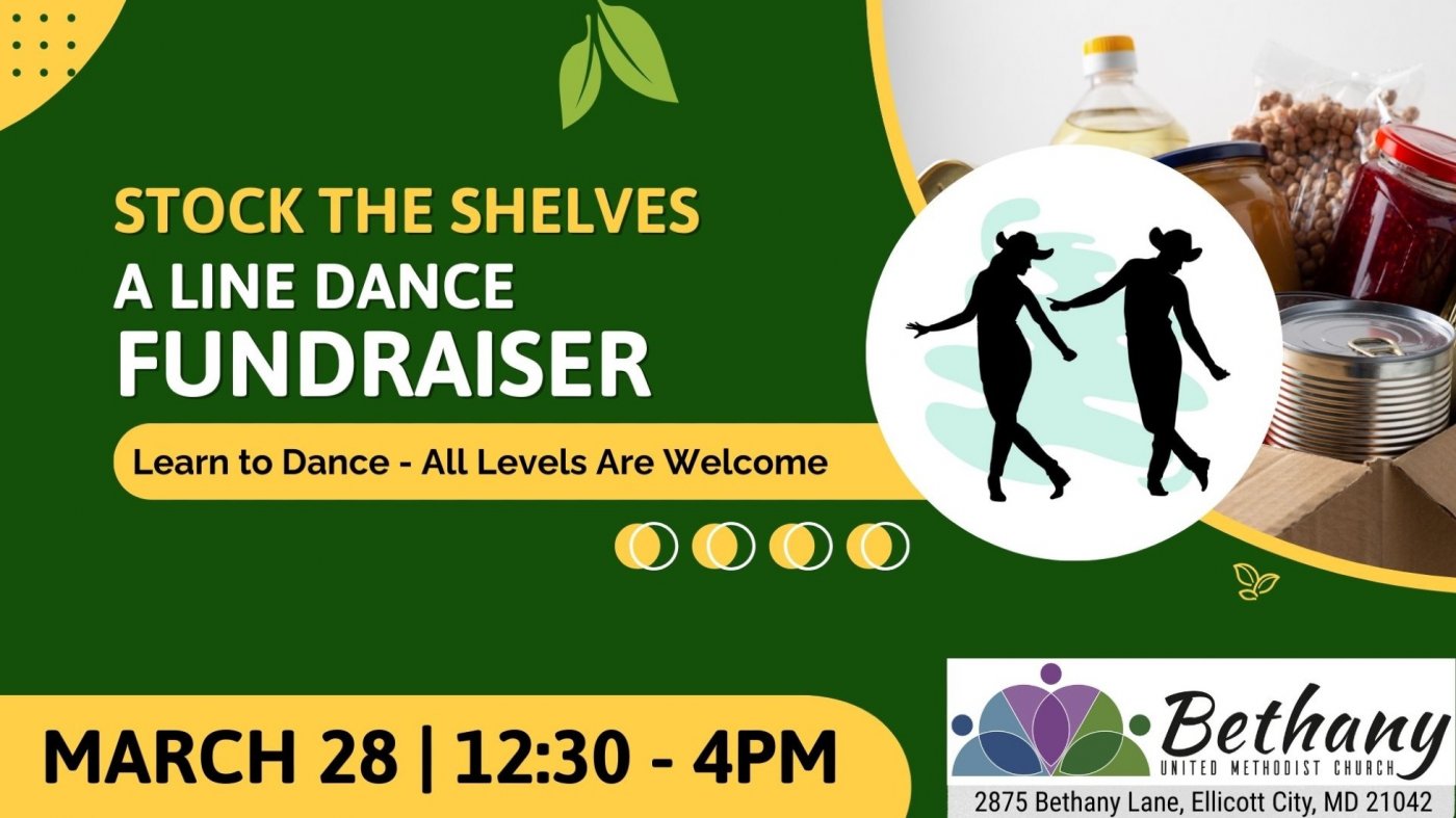 Put on your dancing shoes and join us for a fun, beginner-friendly line dancing fundraiser supporting the Bethany United Methodist Church Online Food Pantry and providing food donations for the Elkridge Food Pantry. No line dancing experience is needed—all ages and skill levels are welcome!