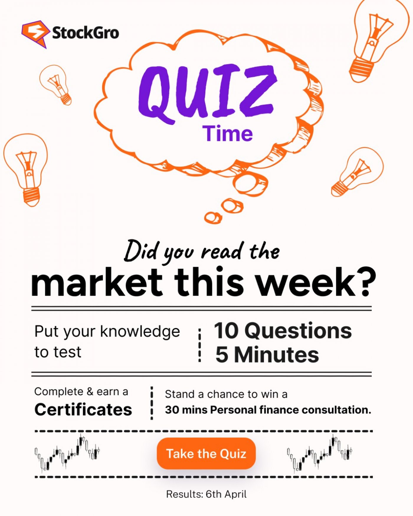 Do you have what it takes to decode the complexities of the current market? Put your financial updates to the test with StockGro’s weekly quiz. Think you’ve been keeping up with the markets this week? Put your knowledge to the test with StockGro’s weekly quiz. Answer 10 quick questions based on the latest market news in just 5 minutes. Complete the quiz to earn a certificate, and one lucky winner stand a chance to win a 30-minute personal finance consultation with experts.