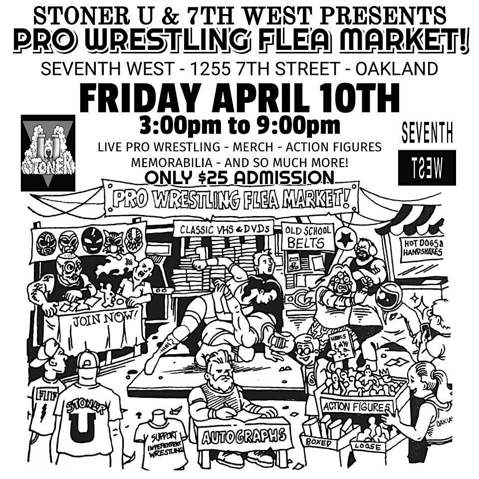 Step into the action and be part of a high-energy night of wrestling and merchandise at our Wrestling Flea Market! Memorabilia, you got it! Merchandise, it's there! Collectibles!? You can collect them all!! On top of the awesome stuff on offer we will have Live Pro Wrestling featuring Stoner U Students, Alumni and The Brave Wrestlers who accept our challenge to join us at The Stoner U Pro Wrestling Flea Market!