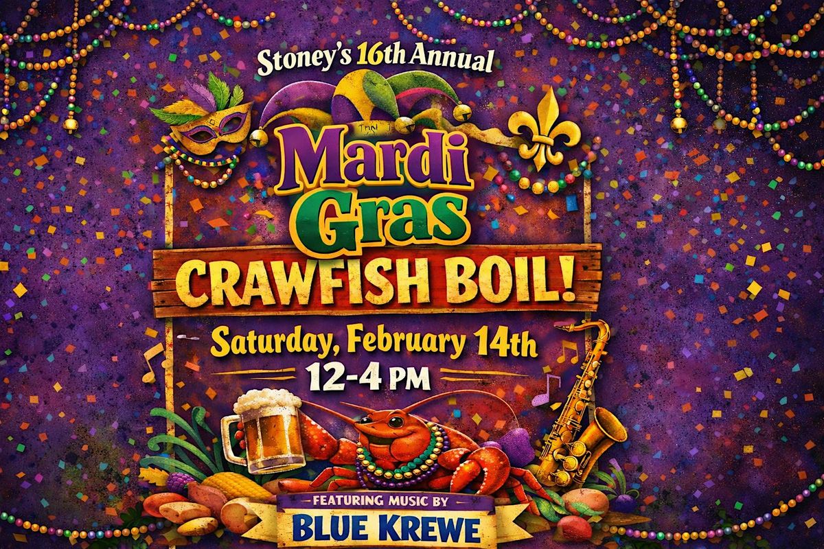 Stoney's Bar and Grill is hosting our 16th annual crawfish boil. We boil 1000lbs of Louisiana crawfish with all the fixins!! Blue Krewe will take the main stage from 12-3PM.