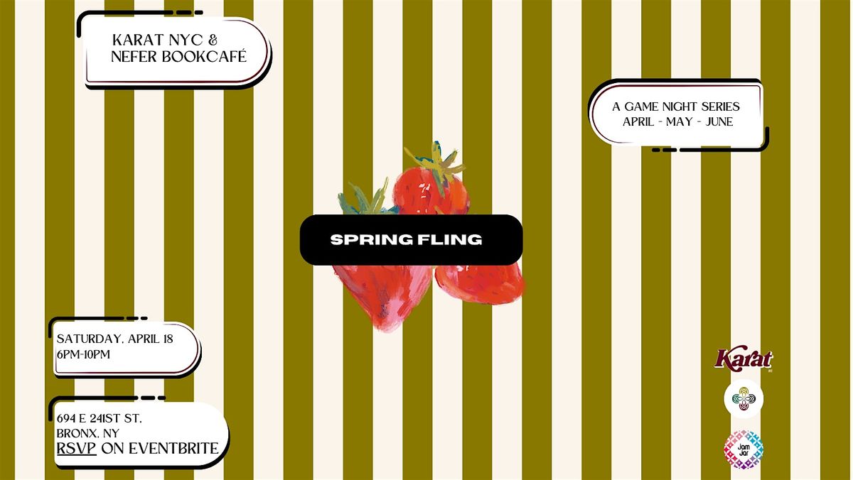 Join us for a new game night series, hosted by Karat NYC and Nefer Bookcafe, and powered by Jam Jar Wines. This event is the kickoff to a three-part series happening in April, May, and June. It's the perfect opportunity to build community, network, show off your competitive side, and much more!