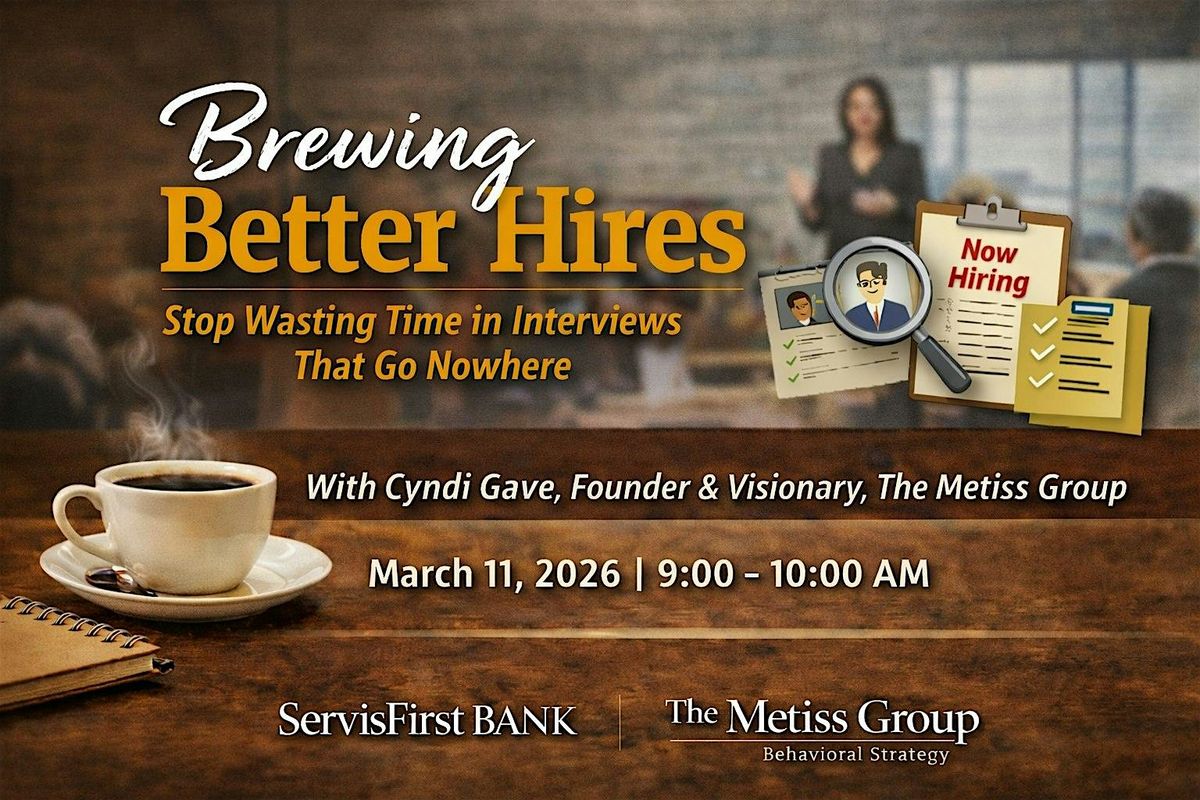 Over coffee and light refreshments, you’ll learn practical, proven hiring strategies you can use immediately, including how to attract the right candidates, run interviews that actually work, and build a repeatable hiring process that leads to stronger teams.