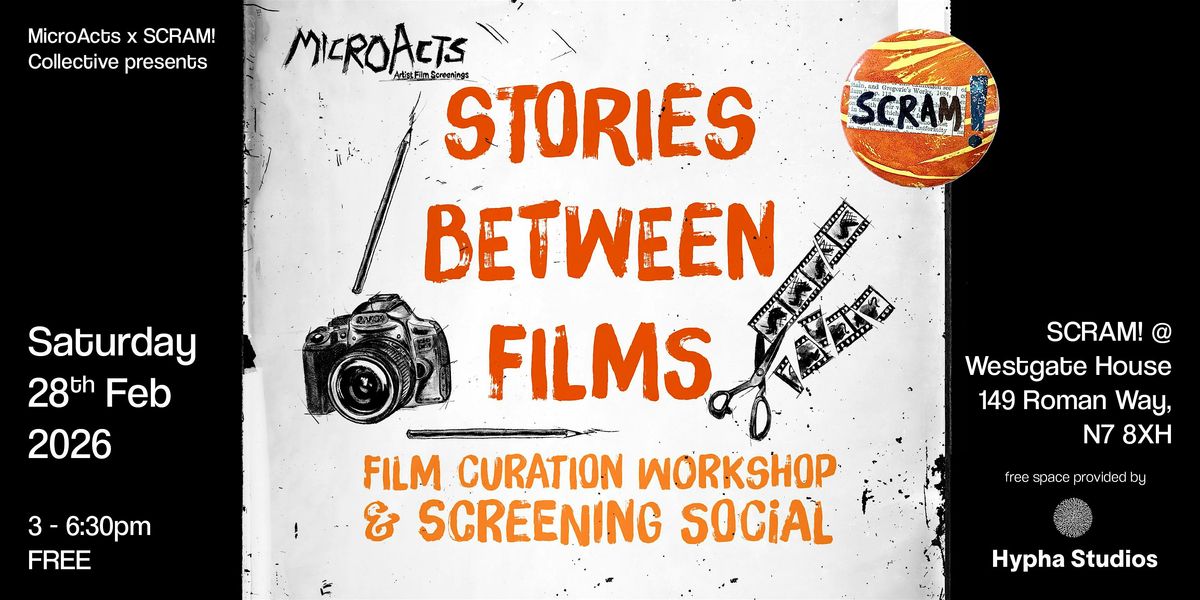 Join us for an playful afternoon exploring storytelling, curation & short films! In this free collaborative workshop, by artist film screening programmers MicroActs and Hypha Studio’s residents SCRAM! Collective, we’ll explore the art of film curation, and enjoy a practical session of putting together a screening. The session will close with a screening social, where we’ll watch your programming work together.