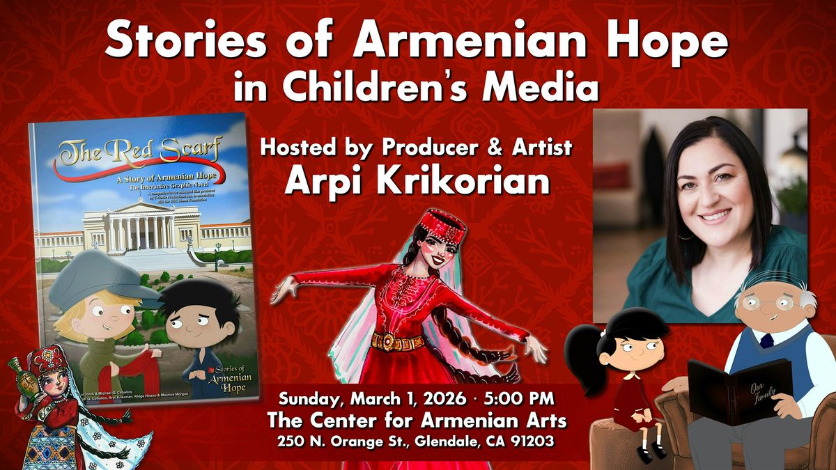 In preparation for Armenian Heritage Month, join us for Stories of Armenian Hope in Children’s Media, a powerful and timely presentation led by Producer & Artist Arpi Krikorian. This special event introduces Stories of Armenian Hope, an educational children’s media initiative designed to teach young learners lessons of resilience, courage, compassion, and humanity through animation, storytelling, and interactive media.
