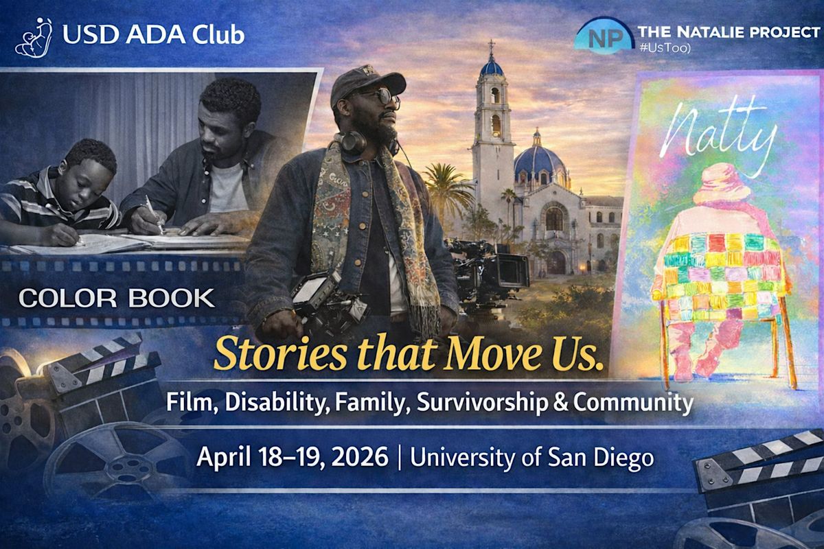 Join us for an event Hosted by USD’s Alliance for Disability Advocates (ADA) and The Natalie Project (#UsToo), the weekend features screenings of the feature length film Color Book and the short documentary NATTY, both directed by filmmaker David F. Fortune, followed by filmmaker conversations, panel discussions, and interactive Human Library experiences with members of the disability community.
