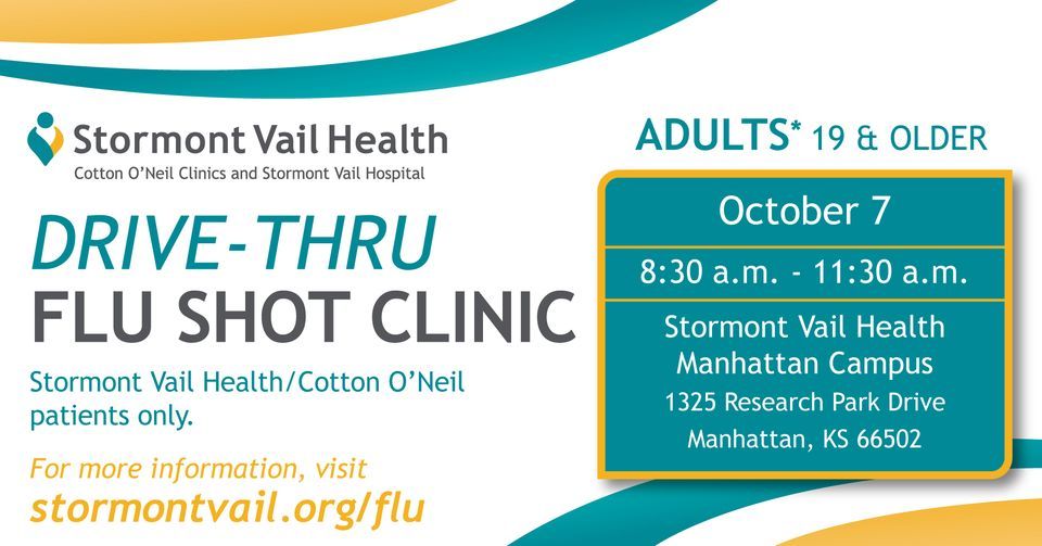 SATURDAY | OCT. 7 | 8:30 - 11:30 a.m. | STORMONT VAIL HEALTH MANHATTAN CAMPUS Stormont Vail Health is making it easier than ever for adult patients to receive their Flu Vaccines!