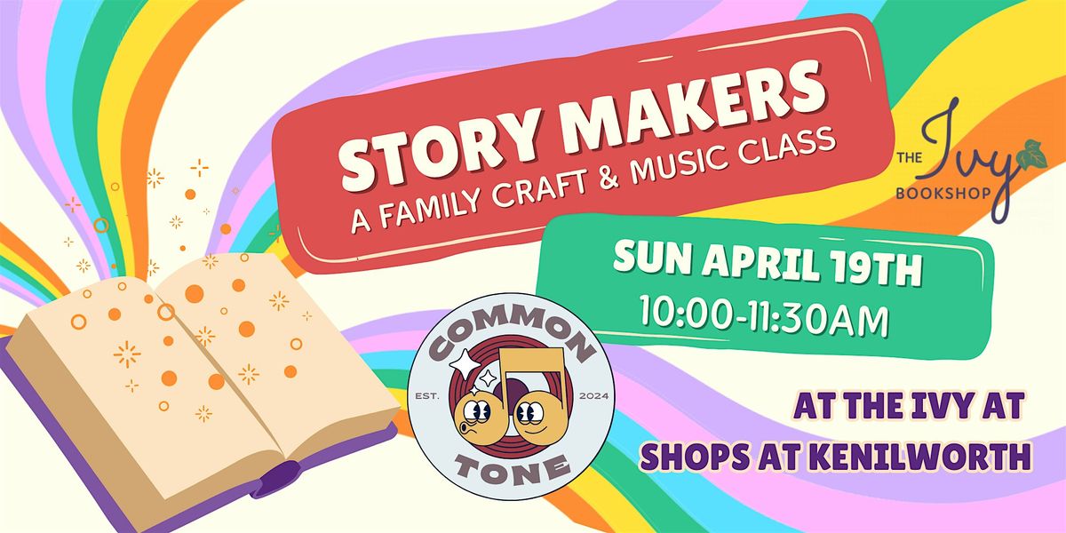 Join Beth & Mike from Common Tone Music at The Ivy at Shops at Kenilworth for Story Makers. This family craft and music class explores a story through songs, art, movement, and play. Children will go home with a craft inspired by that day's story. Tickets are required for each child.