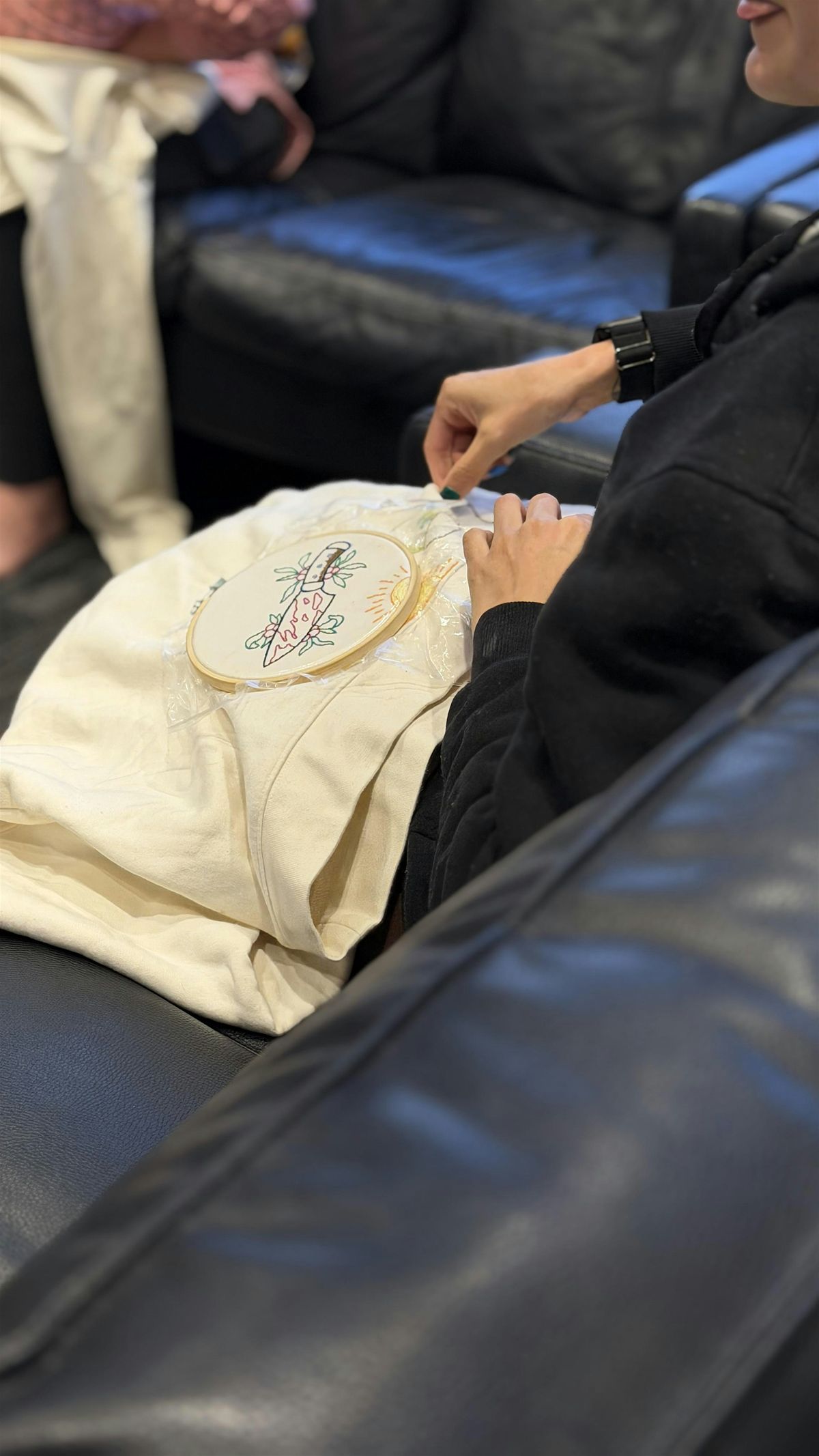 Each month, we’ll dive into a new book together and then meet at our cosy venue to share our thoughts, laughs, and favourite moments. Alongside the discussion, we’ll spend time stitching a custom embroidery patch onto our dedicated Storytime Stitching hoodie ... a creative keepsake that grows with every book we read!
