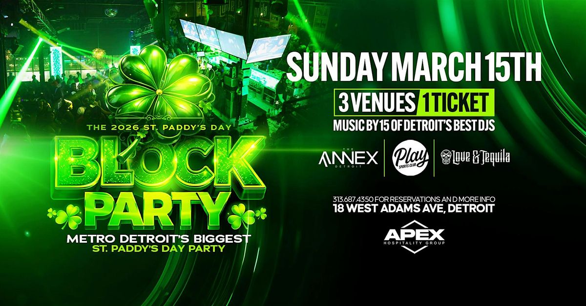 Detroit is turning all the way up for the St. Paddy’s Day Block Party on Sunday, March 15th, taking over The Annex, Love & Tequila, and the all-new Play—three venues, one ticket. This is the city’s BIGGEST party, pulling 1,800+ people with 15 of Detroit’s top DJs running the sound all day and night. Expect VIP booth sections, heavy food menus, and full bars at every venue for a nonstop party experience. 🍀🍻