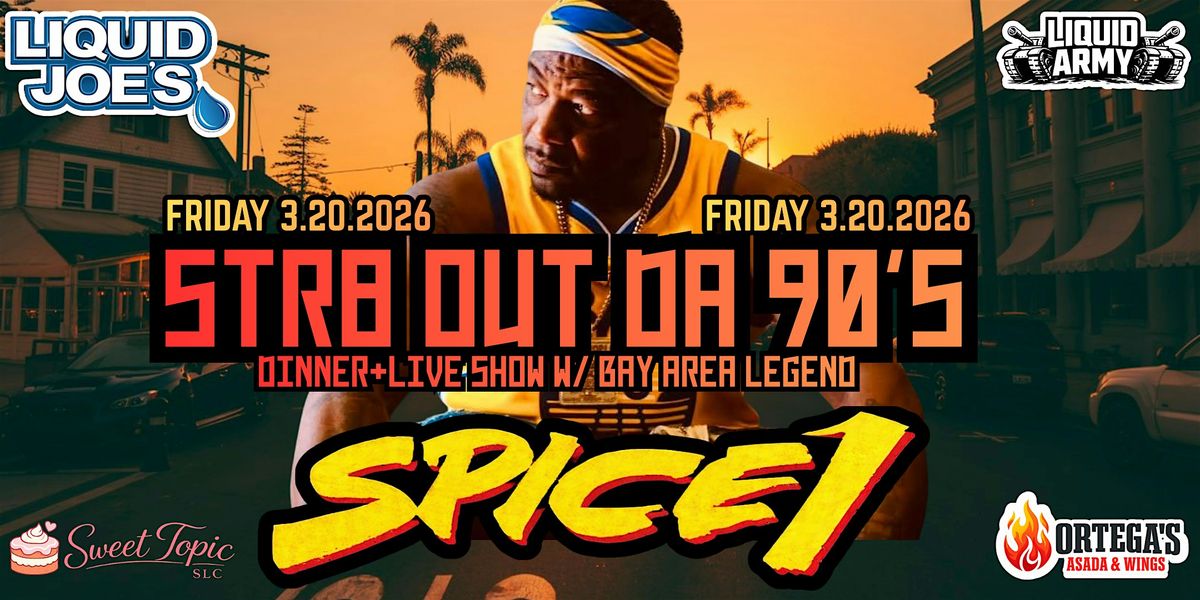 Welcome to STR8 OUT DA 90'S W/ SPICE1 at Liquid Joe's! Get ready to travel back in time on March 20, 2026 at 8:00 AM (Mountain Time). It's gonna be a night filled with nostalgic beats and vibes from the 90's. Don't miss out on this epic throwback event!