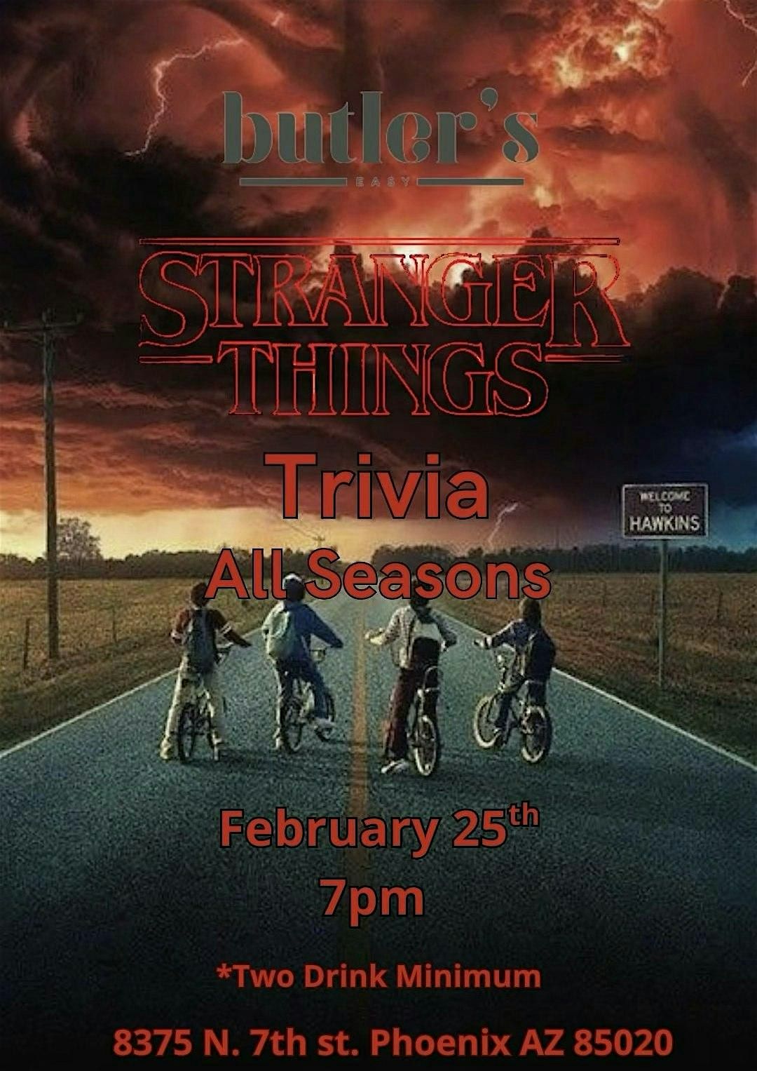 Step into the Upside Down at Butler’s Easy for Stranger Things Trivia Night, covering all seasons of the hit series. From Hawkins High to Vecna’s reign, test your knowledge with questions spanning the entire show. Trivia kicks off February 25th at 7pm, so grab a drink, build your team (up to six players), and see who survives the night.
