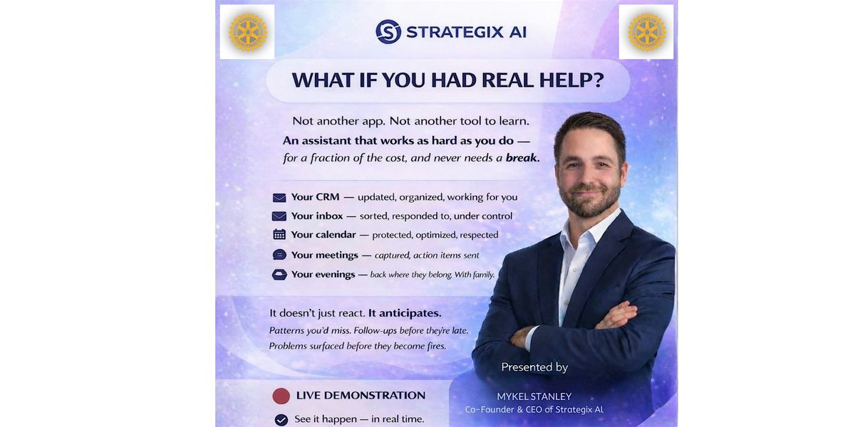 Join us for a live, in-person demonstration of Strategix AI, an intelligent assistant designed to work like a high-level executive partner—handling the operational weight of your business so you can focus on growth, leadership, and life.