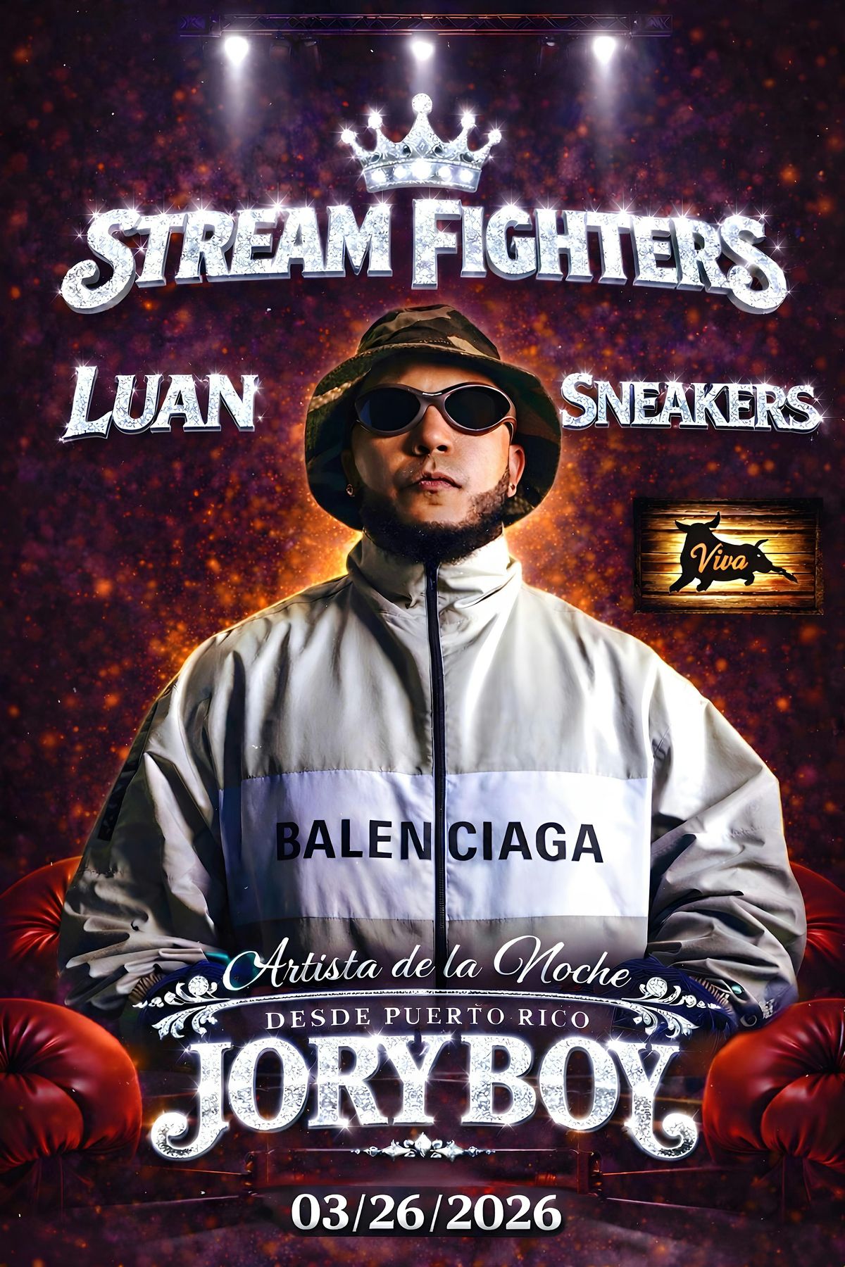 UN EVENTO DE ARTE Y DEPORTE JUNTO A EL ARTISTA QUE HARA VIBRAR LA NOCHE AL RITMO DEL STREAM FIGHTERS LUAN SNEAKERS ,DIRECTAMENTE DESDE LA ISLA DEL ENTRETENIMIENTO, !!!JORY BOYYYYYYYYYYYYYYYYYY!!!!!1....