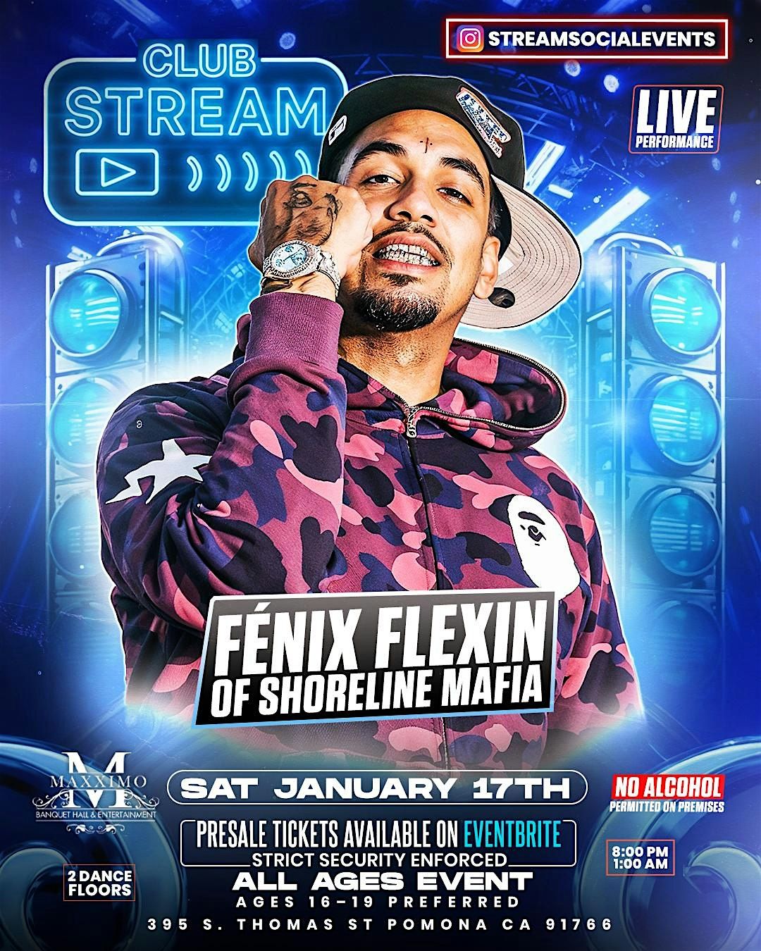 Get ready to turn up at Stream Nightclub with Fenix Flexin bringing the hype - it's going to be lit! ALL AGE NIGHTCLUB 16 -19 PREF