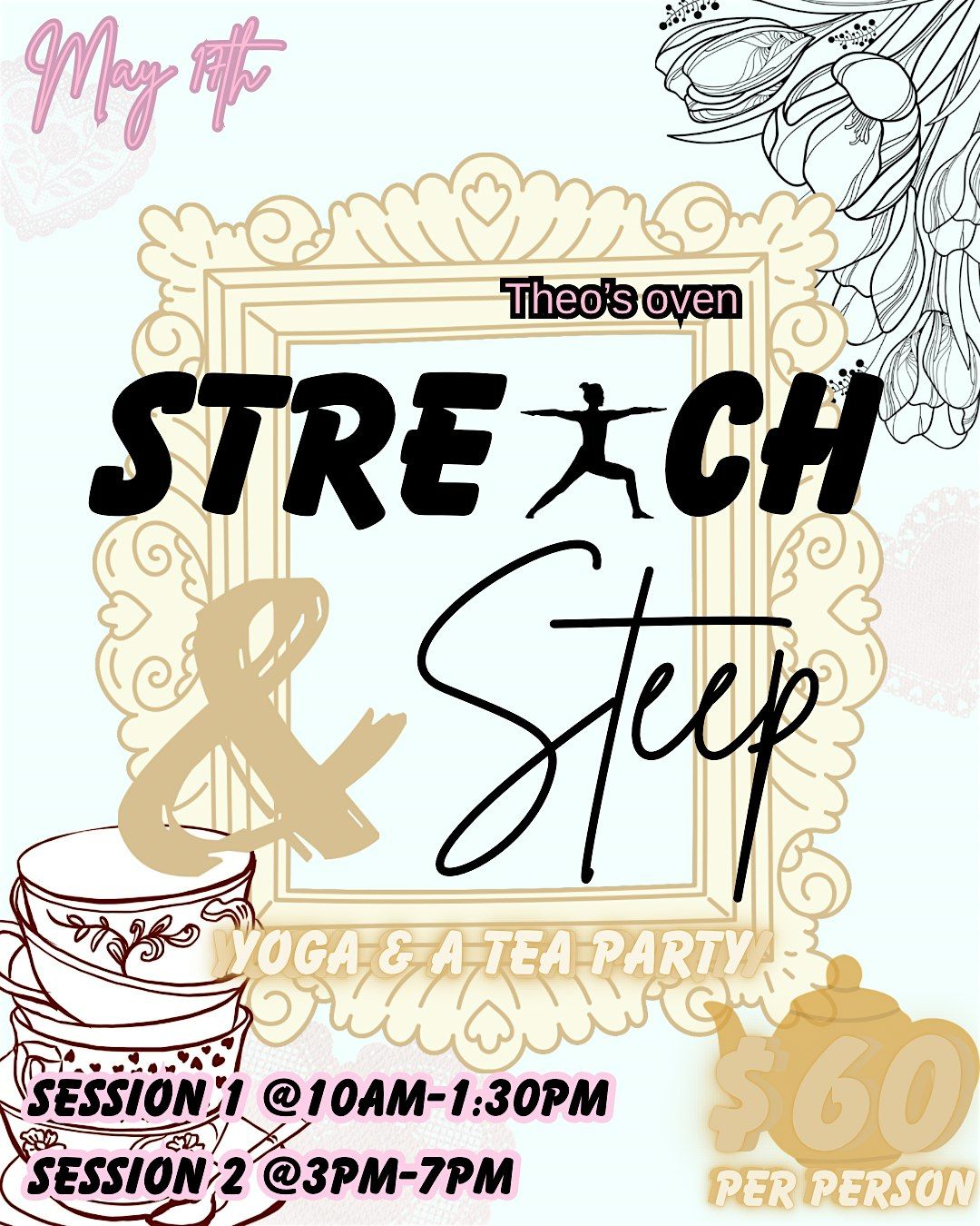Enjoy a beginner friendly yoga session with Mel. Then join Teddi with Theo's oven for a tea party. Check out the menu below👇🏽filled with different flavors of tea, pastries, and savory snacks. Treat your mom, grandmom, or any mom for a "mom&me" discount on tickets👩👧🩷