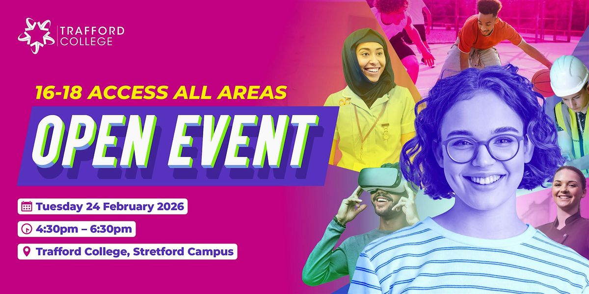 Ready to explore your future? Join us at the Stretford Campus for the Trafford College Open Event! It's the perfect chance to check out the campus, meet staff, and get all your questions answered. Whether you're curious about courses or want a feel for college life, we've got you covered. Don't miss out on this great opportunity to see what Trafford College is all about!