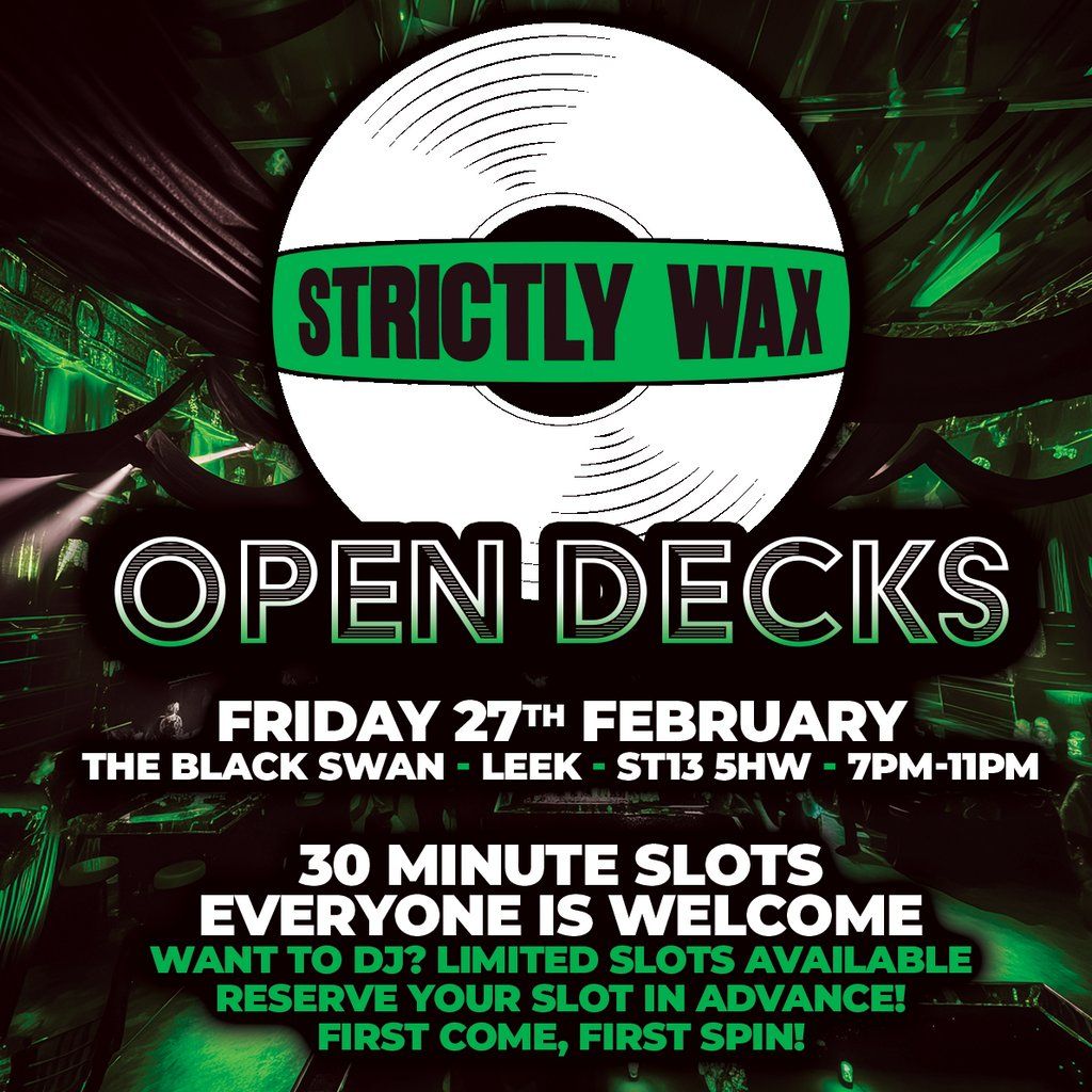 Come vibe with us at Strictly Wax open deck night, spinning vinyl live at The Black Swan, Leek!Music Genres : House, Trance, Breaks, EDM, Hard Dance