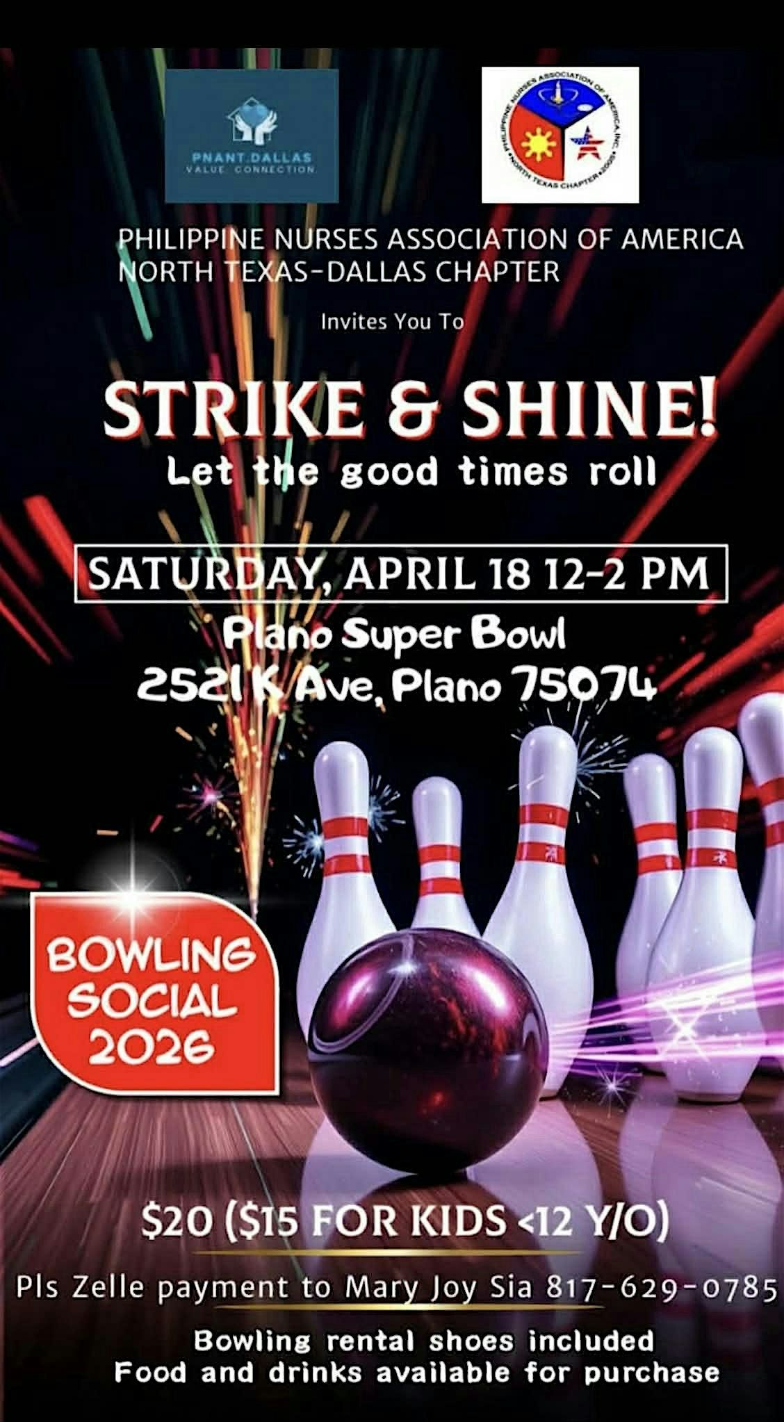 Join us in person for STRIKE & SHINE! where you can meet awesome people, enjoy great vibes, and make unforgettable memories. It’s all about good times, bowling, and lots of smiles. Don’t miss out on this fantastic gathering — come shine with us and make the day truly special!
