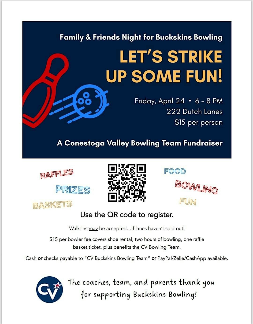 A bowling fundraiser for the Conestoga Valley High School Bowling Team. Price includes unlimited bowling and shoe rental.About this Event