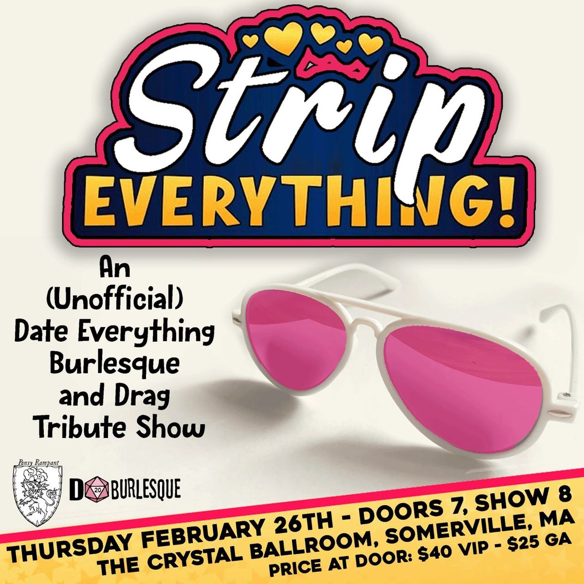 ✨ Embark on an extraordinary journey at Strip Everything - A Burlesque and Drag Tribute to Date Everything, where every moment promises to be unforgettable! 🌟 Imagine of transforming Crystal Ballroom at Somerville Theatre in the heart of Somerville, MA into a realm of endless possibilities. 📅 Join us on February 25th, 2026 at 07:00 PM for an experience that will challenge your imagination and exceed your expectations. 🎯 This carefully curated event combines the finest elements of entertainment, innovation, and community spirit. Whether you're an adventure seeker, culture enthusiast, or someone looking for unique experiences, this event offers something special for everyone. 🎊 Don't miss this chance to be part of something extraordinary!http://maps.seatics.com/CrystalBallroomAtSomervilleTheatre_EndstageTables3_2022-12-09_2022-12-09_0440_12092022_050023_SVGC_tn.png