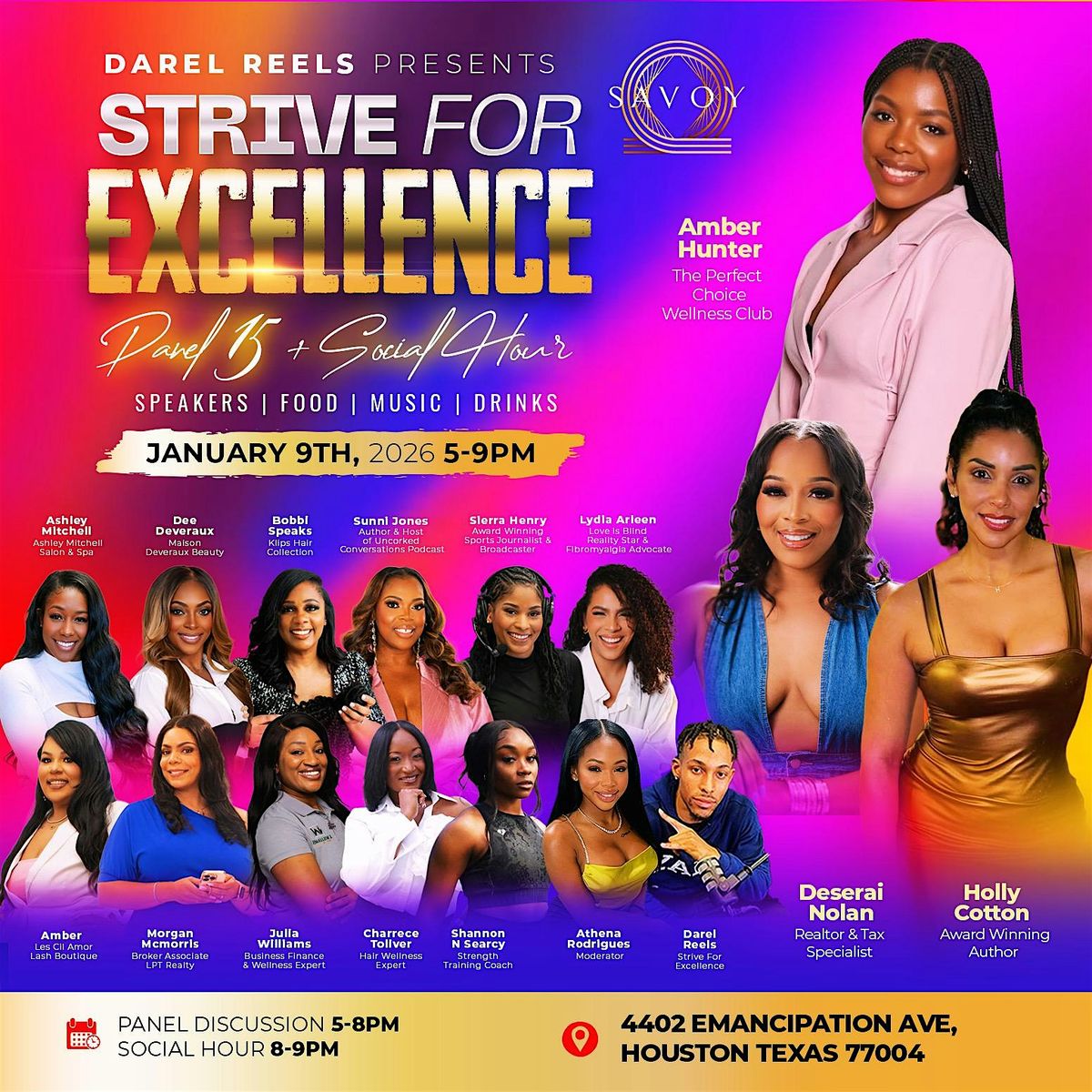 Whether you're looking for motivation, new connections, or simply a fun evening out, Strive For Excellence : Panel 15 + Social Hour has something for everyone. Don't miss out on this opportunity to learn, grow, and have a great time!